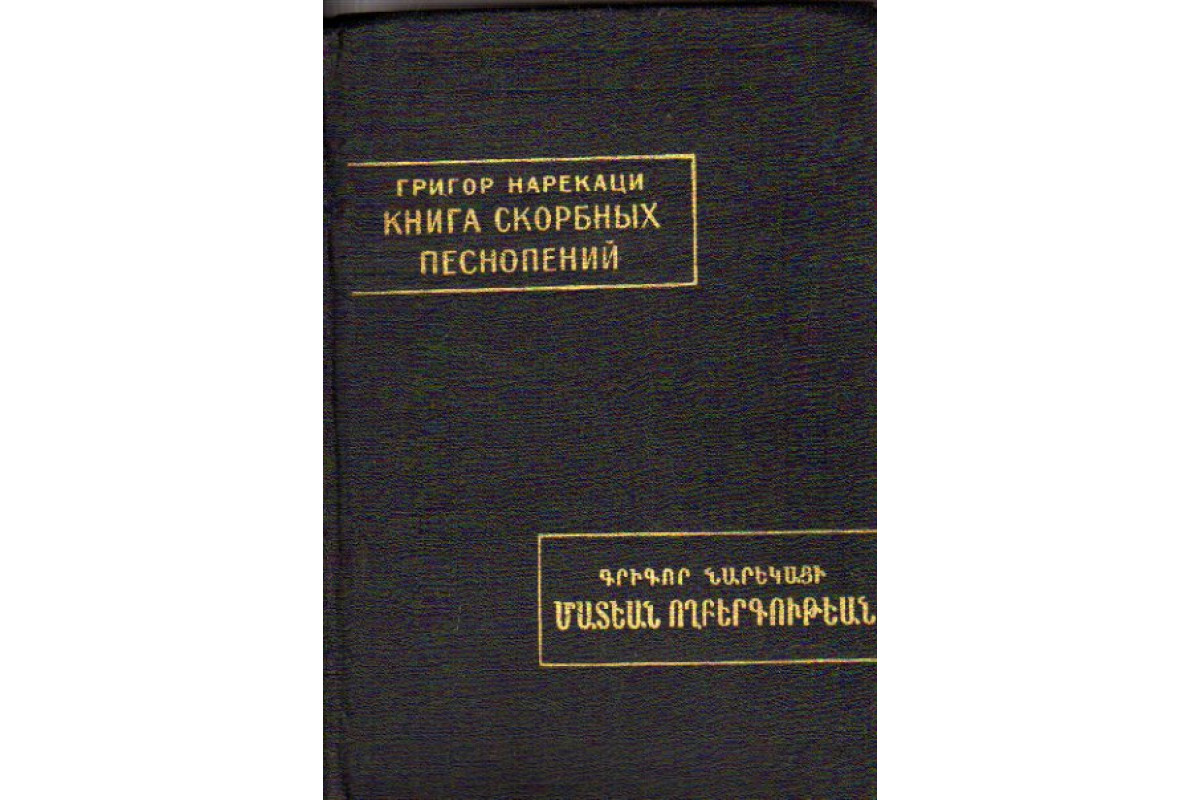 Григор Нарекаци (`Нарекский`) (ок. 951-1003) — армянский поэт, философ, монах, мистик и богослов, представитель раннеармянского Возрождения, чья `Книга скорбных песнопений` представляет собой выдающийся поэтический памятник средневековья. Лирико-философская поэма крупнейшего поэта армянского средневековья - это гимн человеческому духу, охваченному пламенем противоречий, в поисках и сомнениях, страданиях, падениях и взлетах стремящемуся к совершенству. ``Книга скорбных песнопений``, замечательный литературный памятник X века. В отличие от перевода сделанного для серии Серия `Памятники письменности Востока`, LXXVII. М. О. Дарбинян-Меликян и Л. А. Ханларян - этот более художественный и красивый. Тираж 10000 экз.