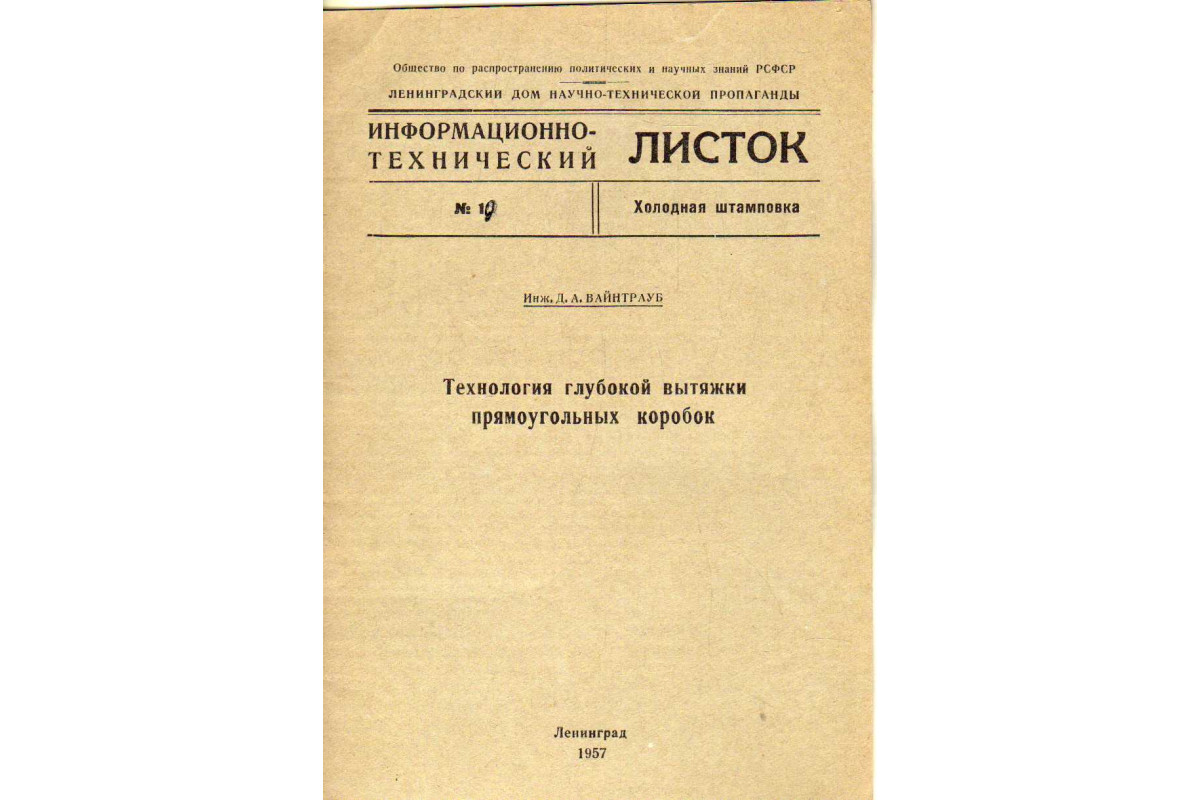 Книга Технология глубокой вытяжки прямоугольных коробок от автора Вайнтрауб Д.А.